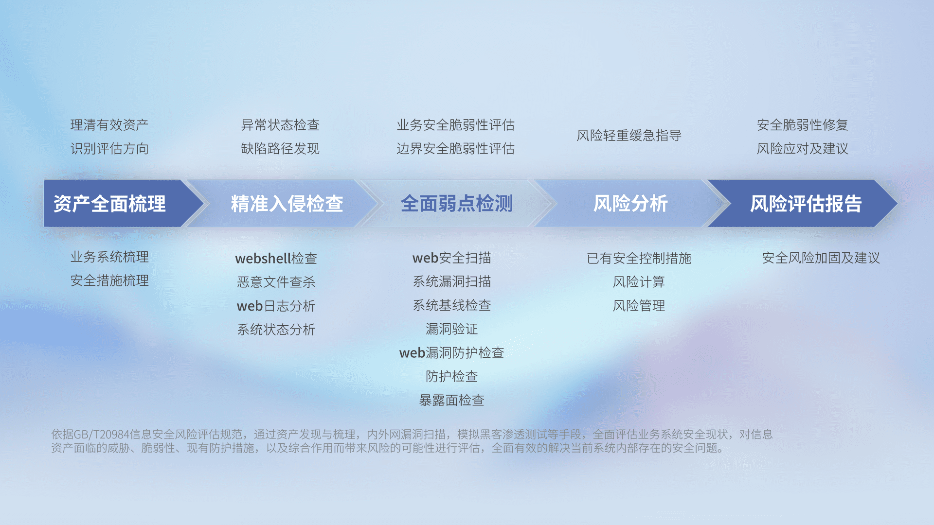 针对客户行业特性,,,,以专业的安全服务+多厂商联合解决方案提供专属的一站式安全管理服务,,,帮助客户全面感知网络空间威胁,,,,基于识别、、检测、、分析、、、防护、、、、监测、、响应的服务理论模型,,,,从方案咨询、、、集成交付、、评估验证、、、、优化加固、、、、运维运营,,致力于为客户提供完整的闭环管理式安全服务。。。。以实战经验为客户打造高抵御风险的安全体系,,,,帮助客户发现威胁、、、、对抗威胁、、、处置威胁,,,不断积累安全对抗能力,,,持续保障数字化安全。。